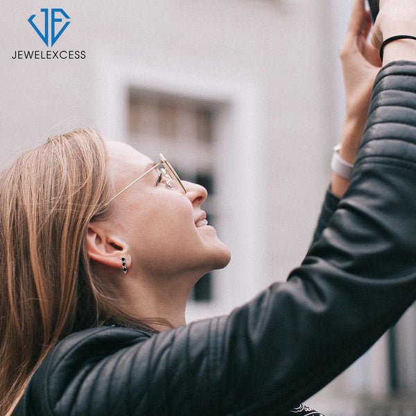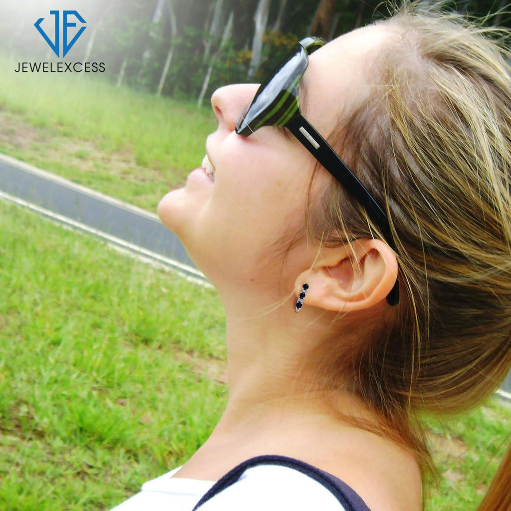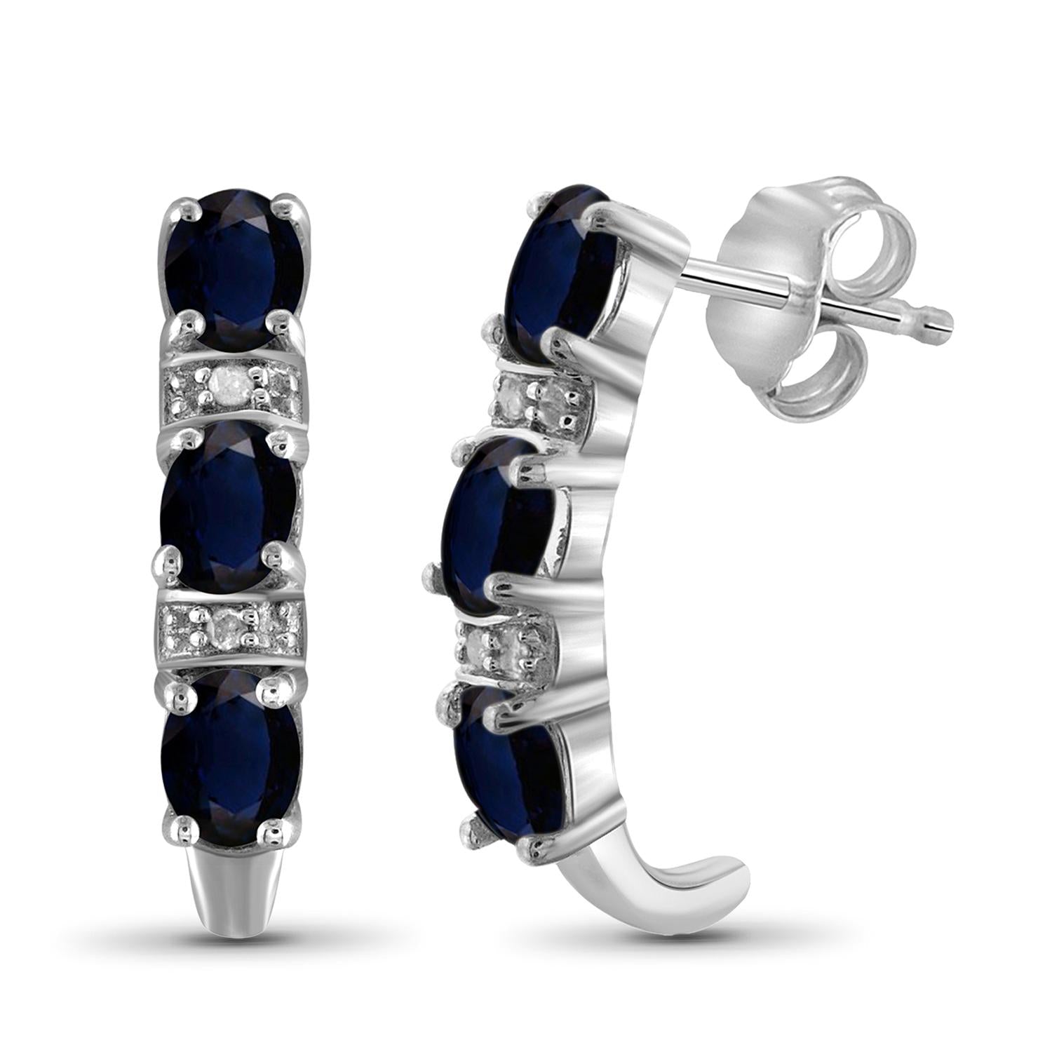 Give your look the royal treatment in these stunning genuine sapphire and diamond J-hoops. Made with sparkling sterling silver, these are designed in a J-shaped motif that provides a unique, sleek look. Each hoop earring is adorned with sapphire stones and dazzling diamond accents that provide flash and sparkle. A push-back closure guarantees that these will fit securely in your ears for comfort that will come in handy for any formal event that you have to attend.