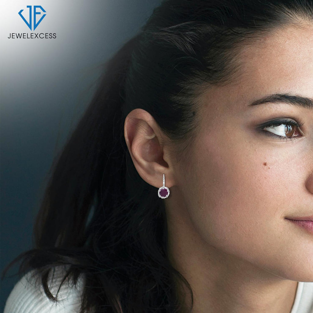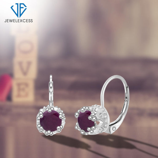 1.30 Carat T.G.W. Ruby Sterling Silver Crown Earrings