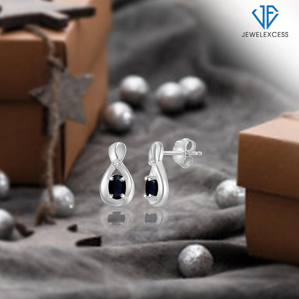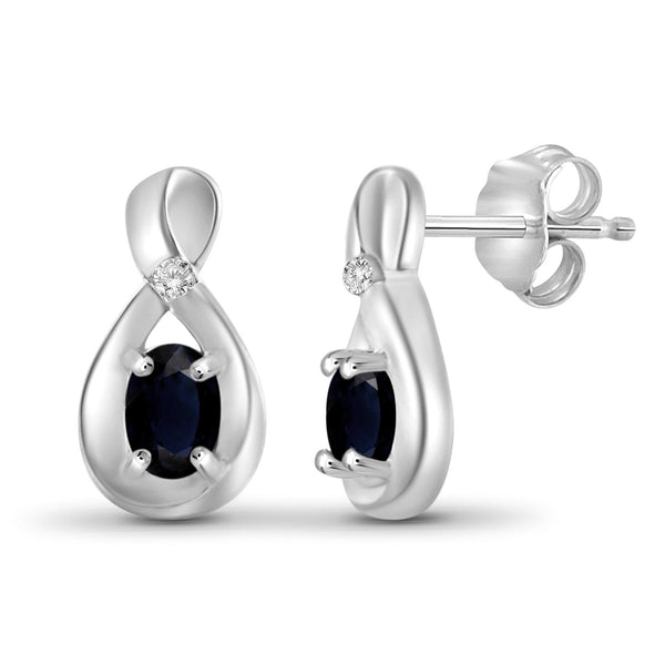 0.60 Carat Sapphire Gemstone and Accent White Diamond Earrings in Sterling Silver