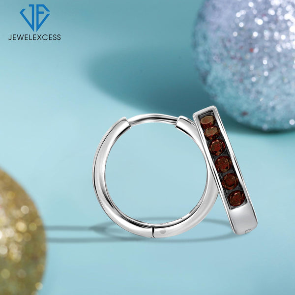 JEWELEXCESS Red Diamond Earrings Women – 1/4-Carat Red Diamonds Sterling Silver Hoop Earrings Small – Hypoallergenic Hoop Earrings – Small Hoop Earrings Diamond Hoops – Red Hoop Earrings for Women