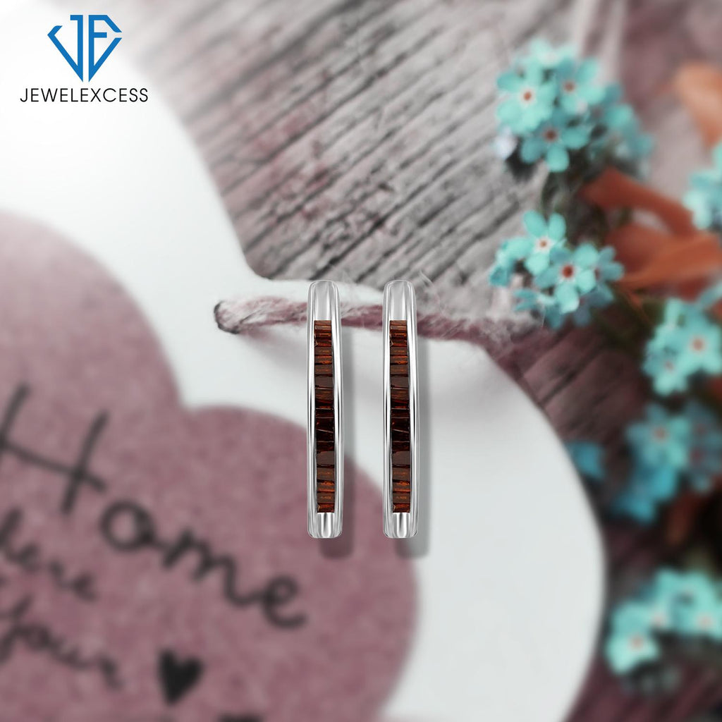 JEWELEXCESS Red Diamond Earrings Women – 1/2-Carat Red Diamonds Sterling Silver Hoop Earrings Small – Hypoallergenic Hoop Earrings – Small Hoop Earrings Diamond Hoops – Red Hoop Earrings for Women