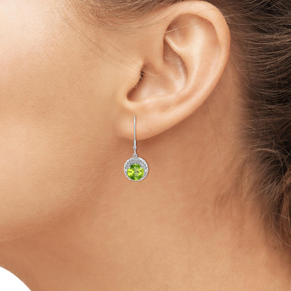 Want to celebrate this spectacular fashion season by rocking a pair of gemstone earrings in a beautiful shade of green? These fabulous drop earrings feature gorgeous round peridots that are surrounded by sparkling diamond accents for a remarkable look. They're perfect for special occasions, but are also a great way to bring a little everyday elegance to your look. A must-have for every jewelry collection!
