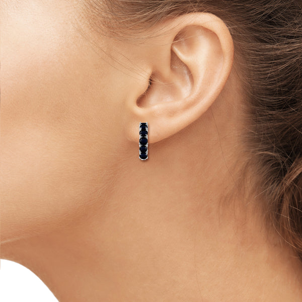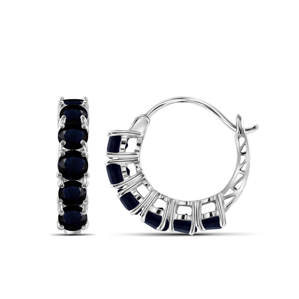 4 1/2 Carat T.G.W. Sapphire Sterling Silver Hoop Earrings