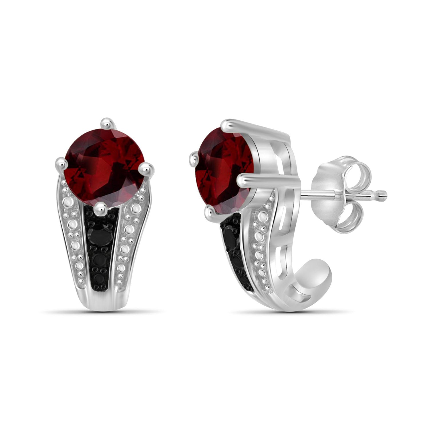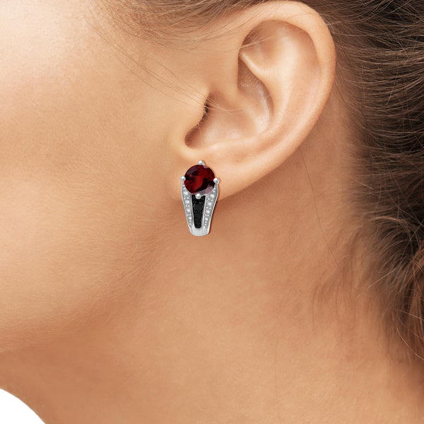 2.00 Carat T.G.W. Garnet And Black Diamond Accent Sterling Silver J Hoop Earrings