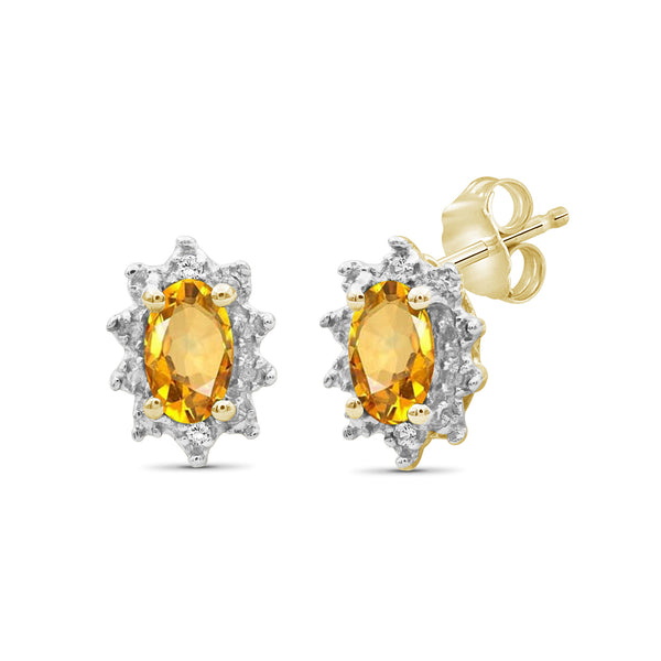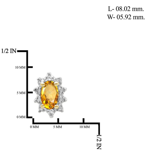 0.44 Carat T.G.W. Citrine Gemstone and White Diamond Accent 14K Gold-Plated Earrings