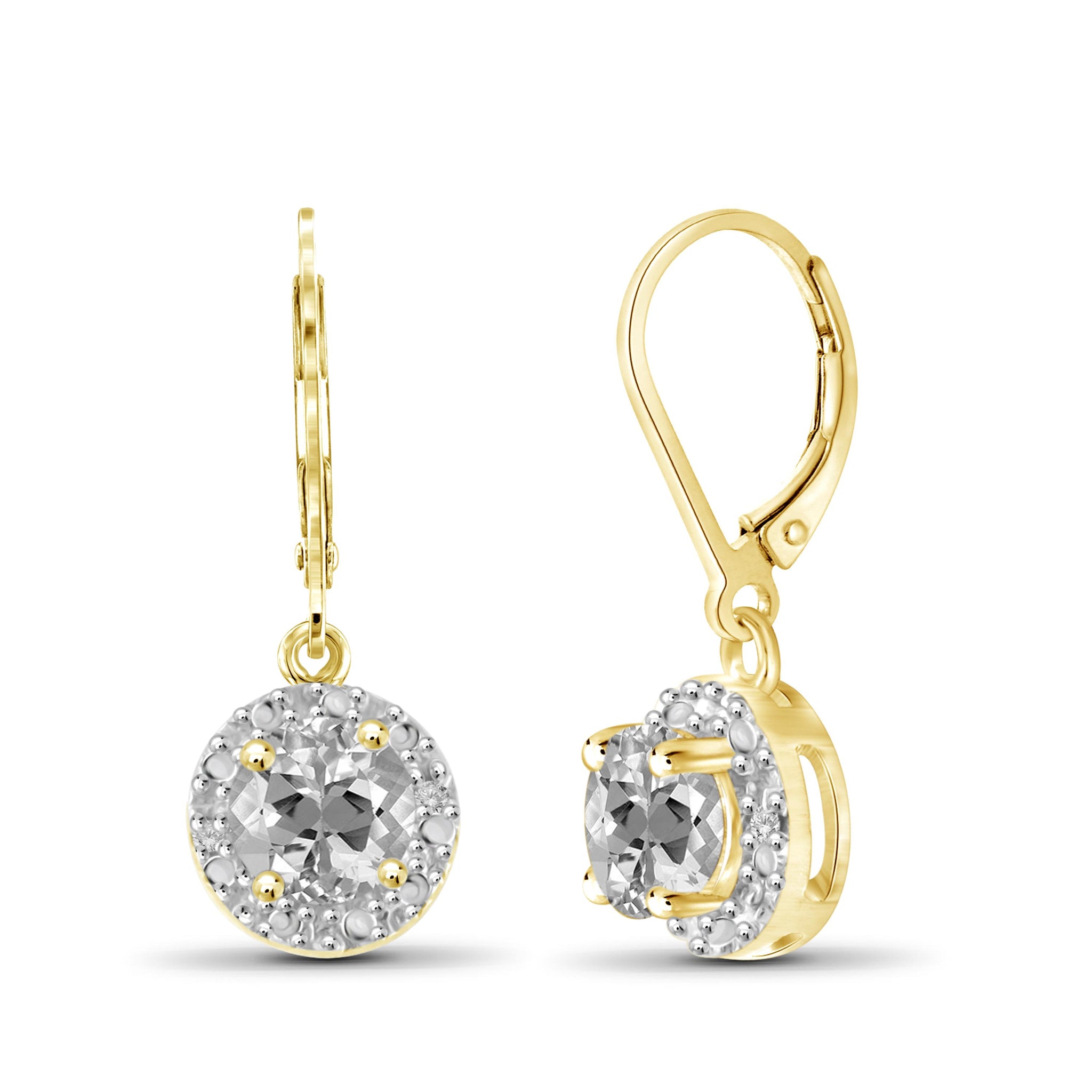 1 1/4 Carat T.G.W. White Topaz And White Diamond Accent 14K Gold-Plated Drop Earrings