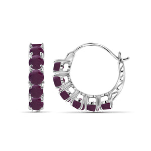 4 Carat T.G.W. Ruby Sterling Silver Hoop Earrings