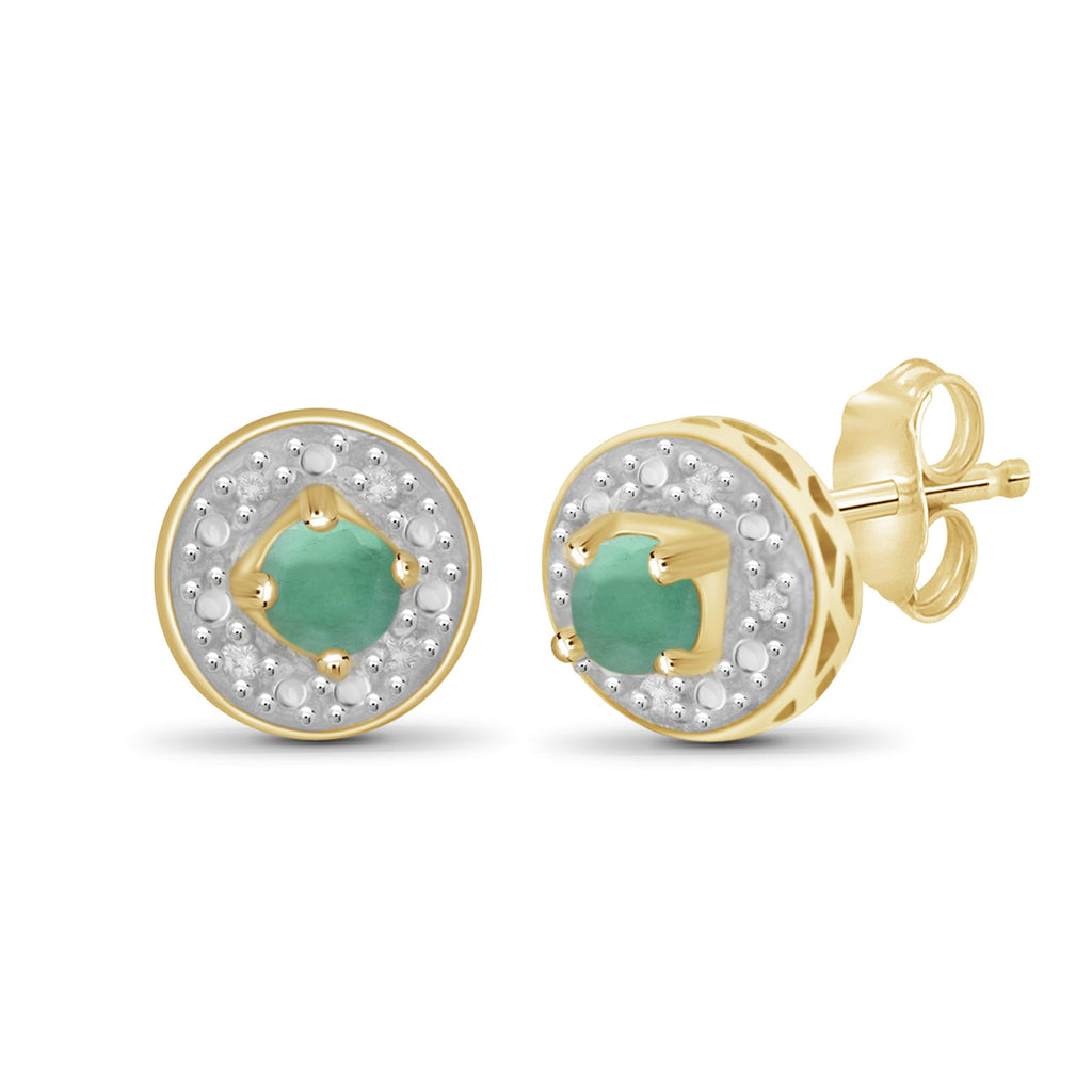 0.20 CTW Emerald & 1/20 Carat White Diamonds Earrings in 14K Gold-Plated