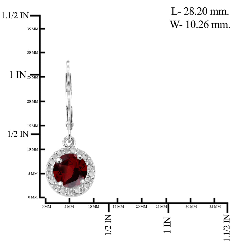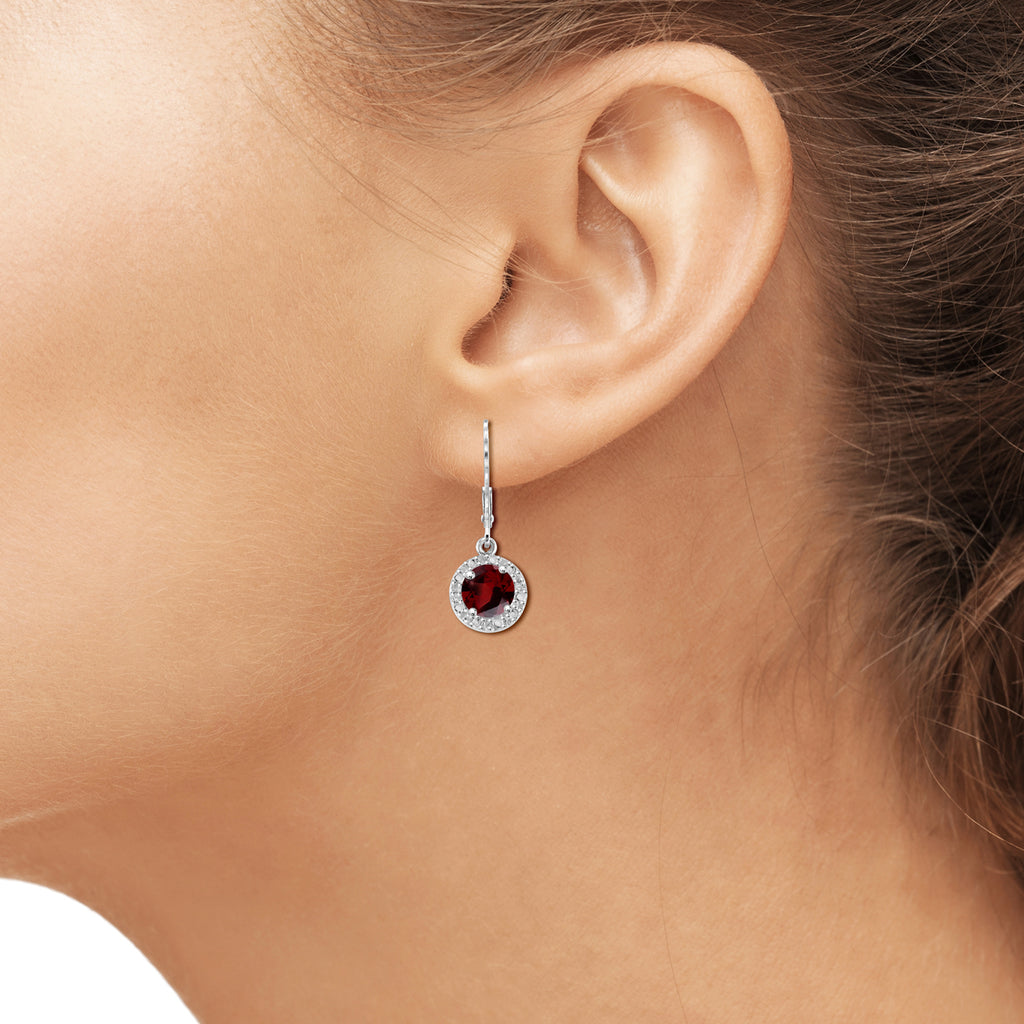 Details 0.925 Sterling Silver Genuine Garnet 1 1/5 carat total weight White Accent Diamond Lever back Halo Earrings , the January birthstone, is an exquisite gemstone with rich, deep hues. This lovely stone is mostly associated with romance and royalty and is said to represent purity of the soul. When you wear these gorgeous Elegant Genuine Garnet & Diamond Accent Earrings you'll radiate all the characteristics this stone embodies. You'll look and feel more divine than you already are all thanks to the beauty of Garnet.
