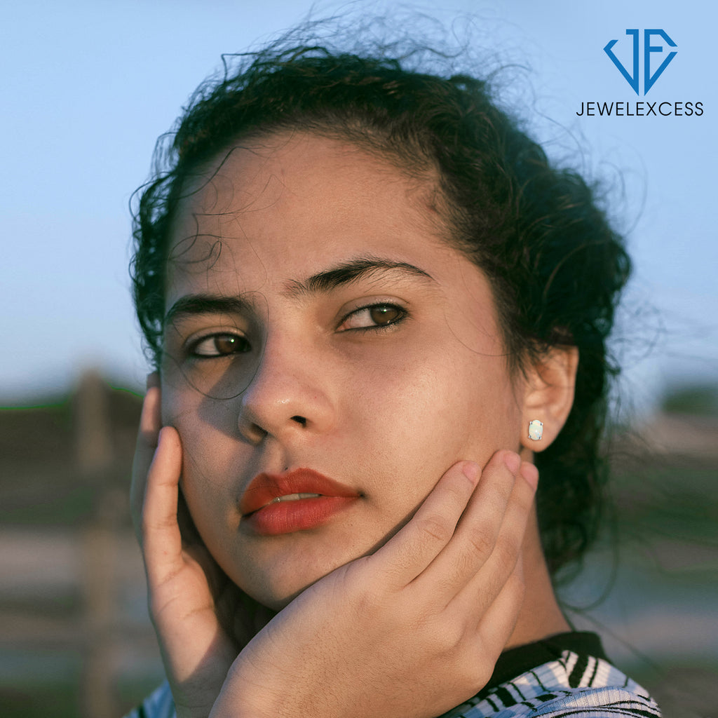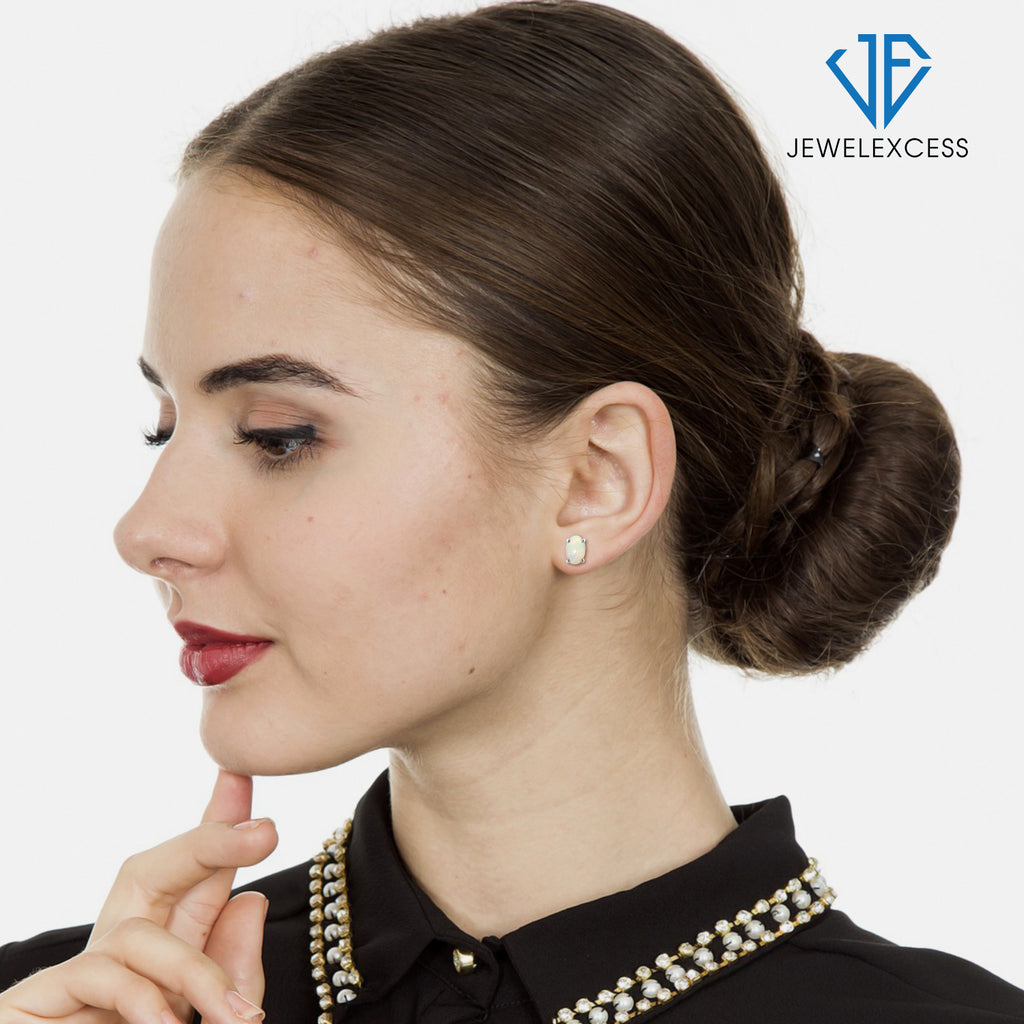 Adorn yourself with our genuine Opal gemstone earrings in your ears. They feature two genuine oval Opal gemstones in a prong setting. In addition, these earrings include push-back post closures that fit comfortably and securely in your ears. It makes quite a wonderful complement to your fashionable evening wardrobe!