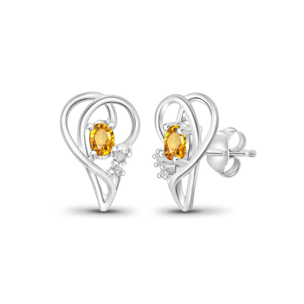 0.44 Carat T.G.W. Citrine Gemstone and White Diamond Accent Sterling Silver Earrings