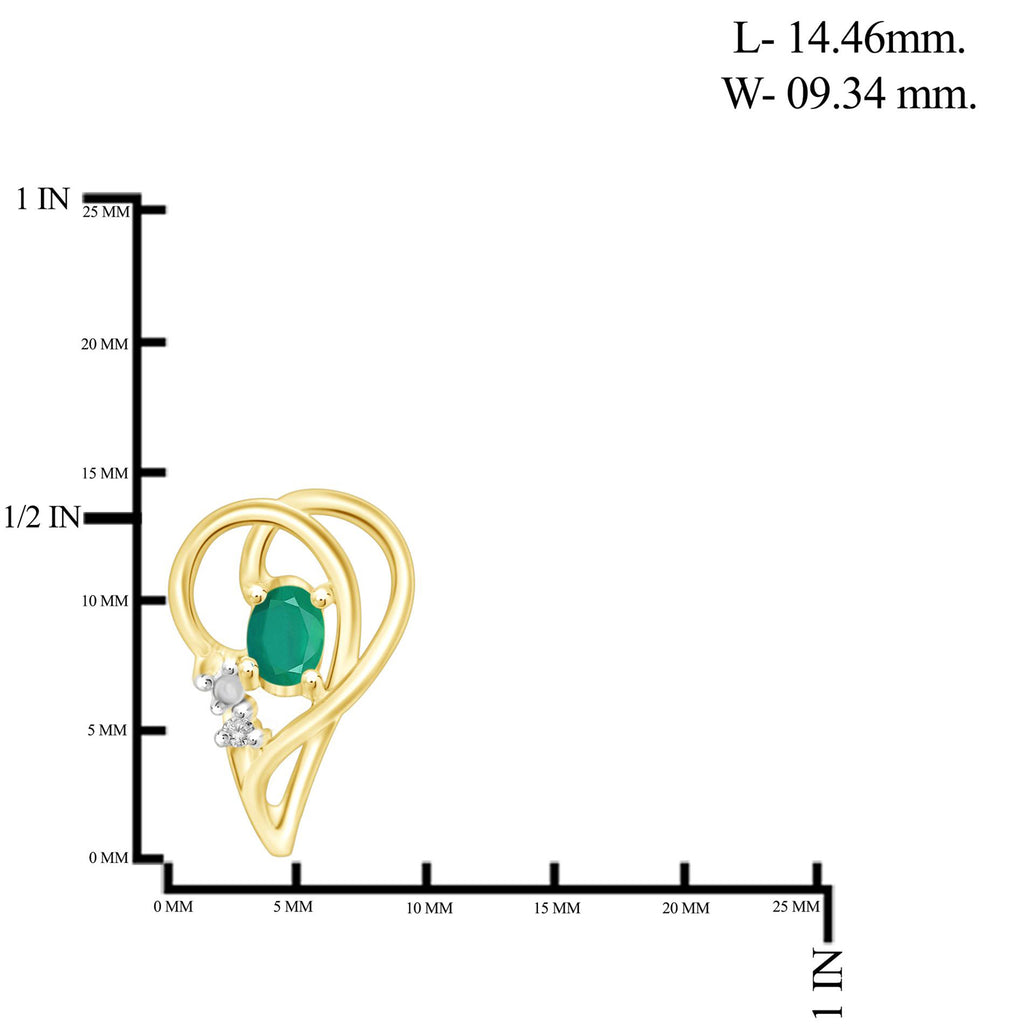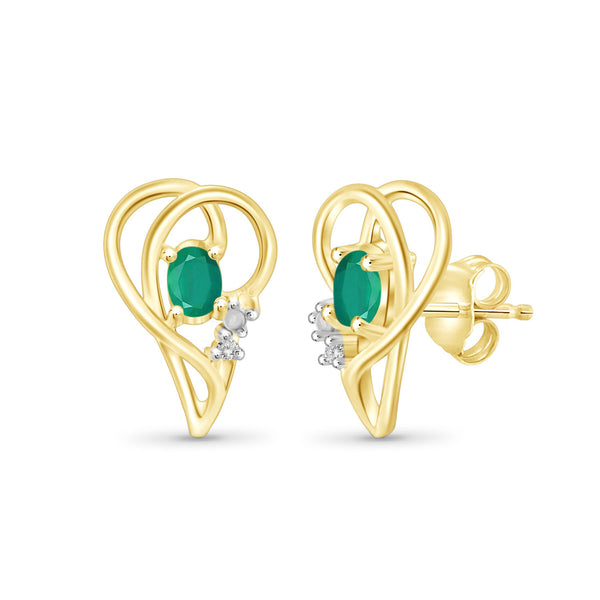 0.46 Carat Emerald Gemstone and Accent White Diamond 14K Gold-Plated Earrings
