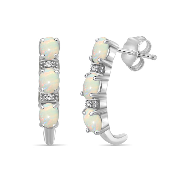 1.14 Carat T.G.W. Opal Gemstone and White Diamond Accent Dangle Sterling Silver Earrings