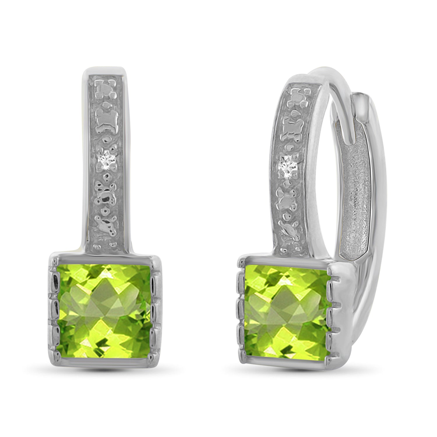 1.00 Carat T.G.W. Peridot And White Diamond Accent Sterling Silver Hoop Earrings