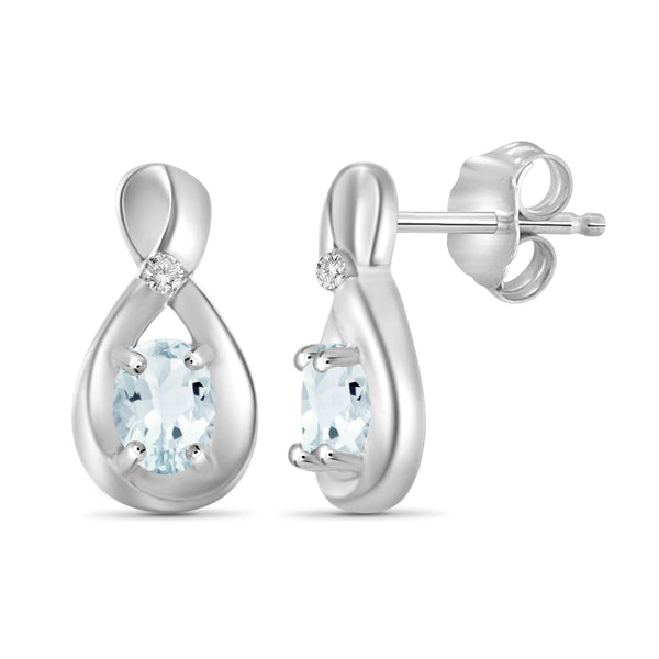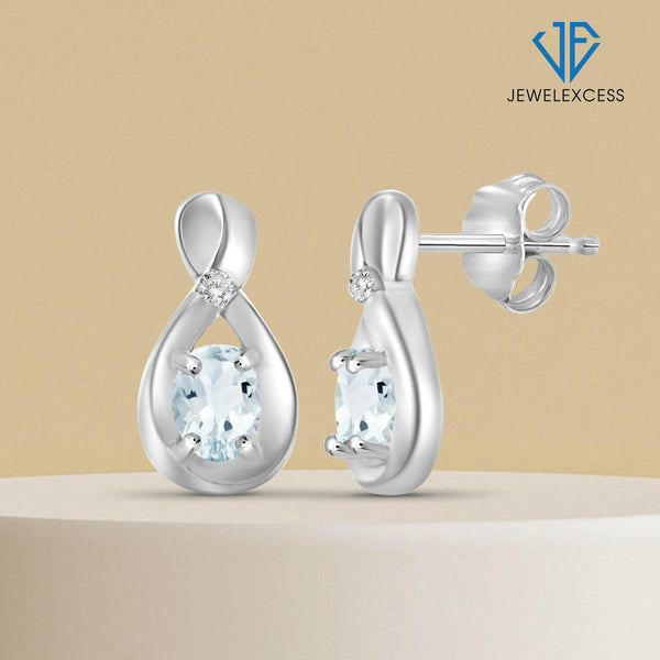 0.44 Carat Aquamarine Gemstone and Accent White Diamond Earrings