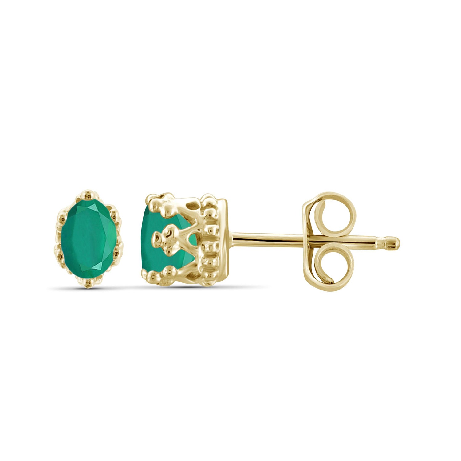 All it takes to add a fresh new element to your look is a little pop of color. These gorgeous gemstone earrings feature a cool crown setting that showcases the brilliant green color of the emerald stones. They're not too overpowering, so you can easily pair them with all your favorite looks, from casual to dressy.