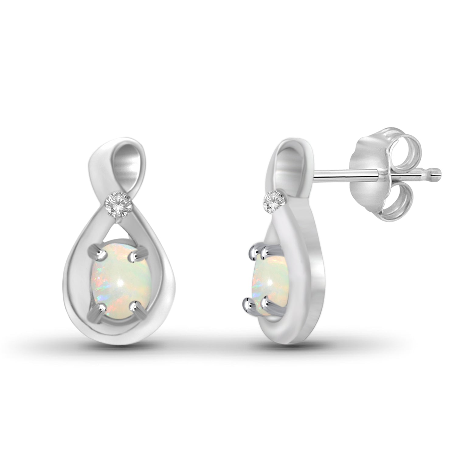 0.28 Carat T.G.W. Opal Gemstone and White Diamond Accent Sterling Silver Earrings