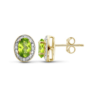 1.00 Carat T.G.W. Peridot And White Diamond Accent 14K Gold-Plated Stud Earrings