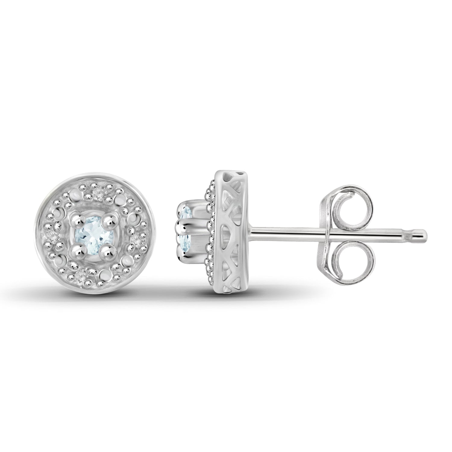 The word "aquamarine" is derived from the Latin phrase aqua marina, which means "sea water," a reflection of this fascinating gem's breathtaking color. It's a gorgeous blue hue capturing the allure of the sky and the seas. These dazzling earrings feature aquamarine gemstones and white diamonds that will illuminate any style of outfit from your most casual to your most daring. Its high-polish sterling silver surface will glimmer brilliantly under any light at every turn of your head. It's a gorgeous piece you'll treasure forever and turn to time after time.