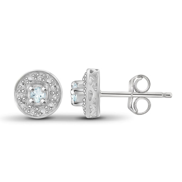 Aquamarine Accent and White Diamond Accent Sterling Silver Halo Earrings