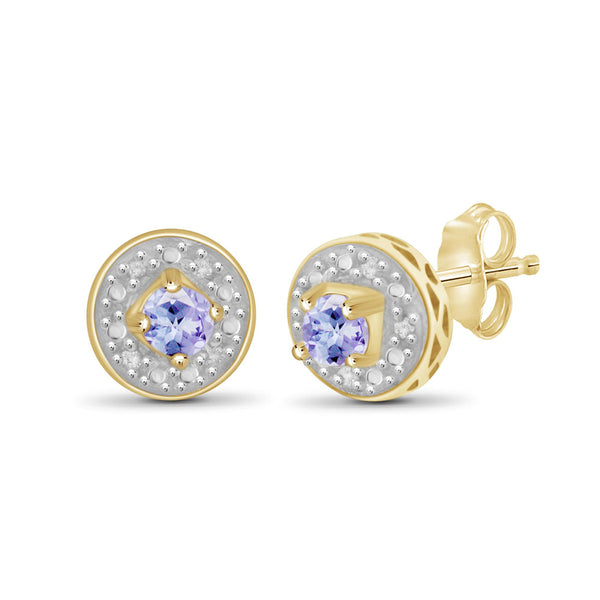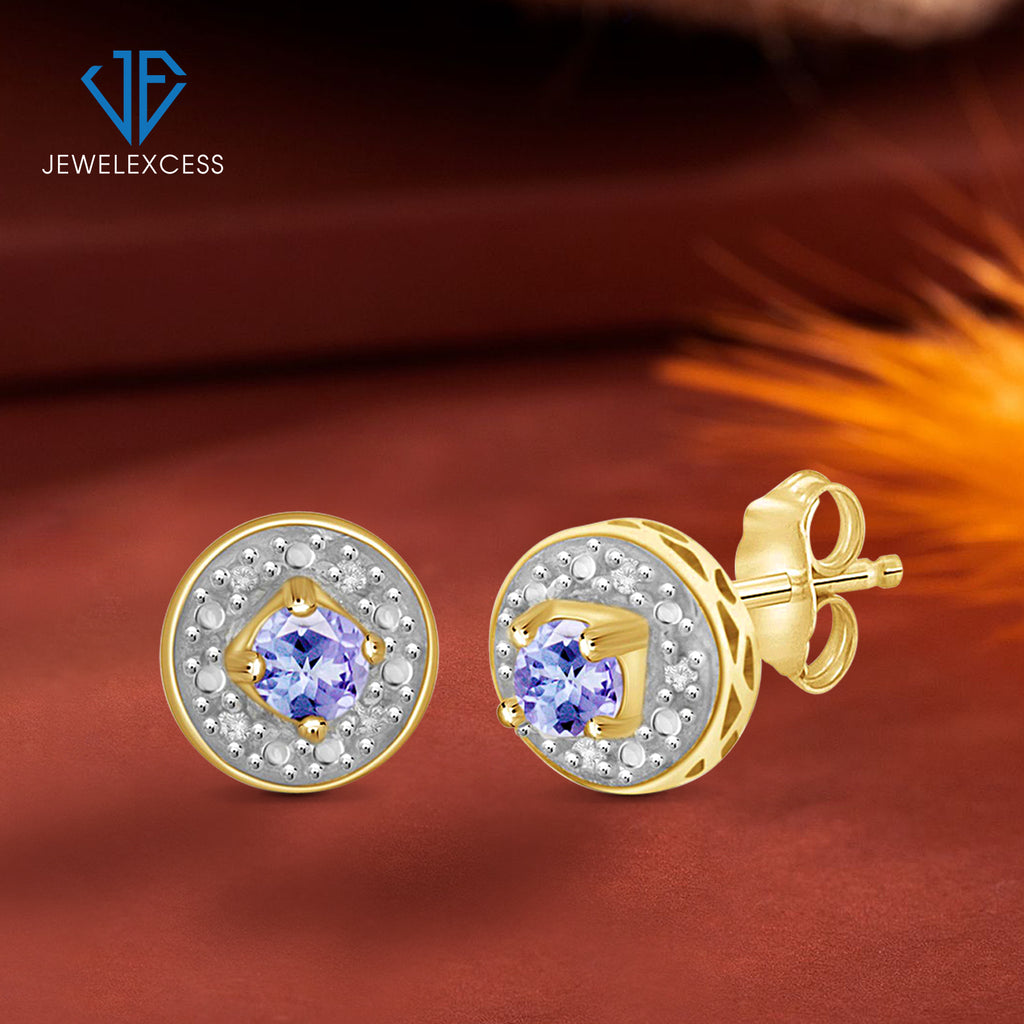 1/5 Carat T.G.W. Tanzanite and White Diamond Accent 14K Gold-Plated Stud Earrings
