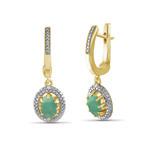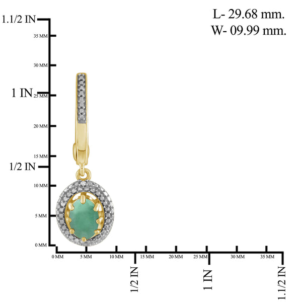 1.40 CTW Emerald and Accent White Diamonds Dangle Earrings – 14K Gold Plated Silver| Hypoallergenic for Women - Oval Cut Set with Lever Backs