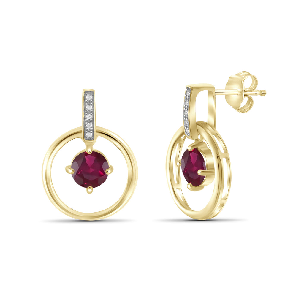 1 1/3 Carat T.G.W. Ruby And White Diamond Accent 14K Gold-Plated Stud Earrings