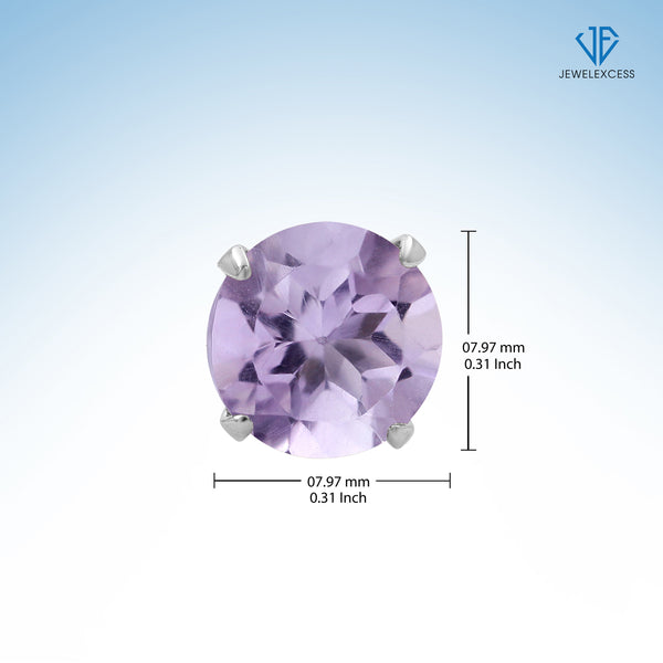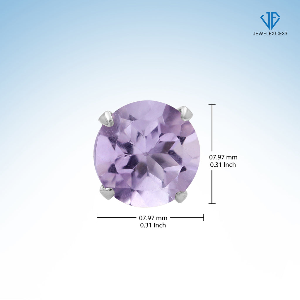 3.20 CTW Pink Amethyst Stud Earrings – Sterling Silver (.925)| Hypoallergenic Studs for Women - Round Cut Set with Push Backs
