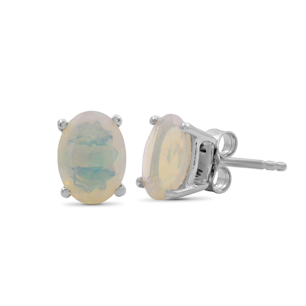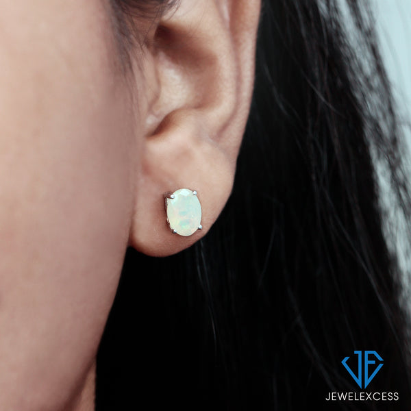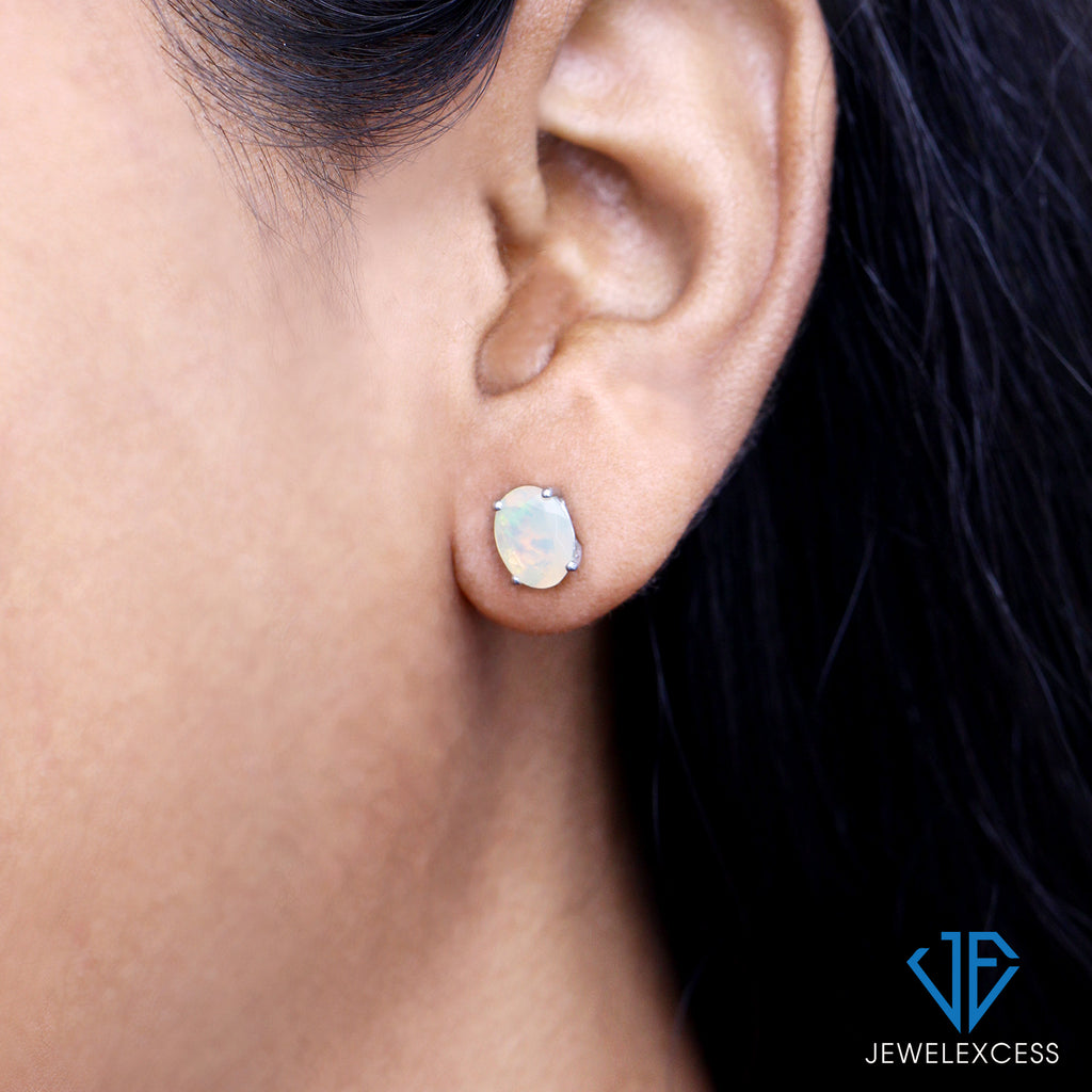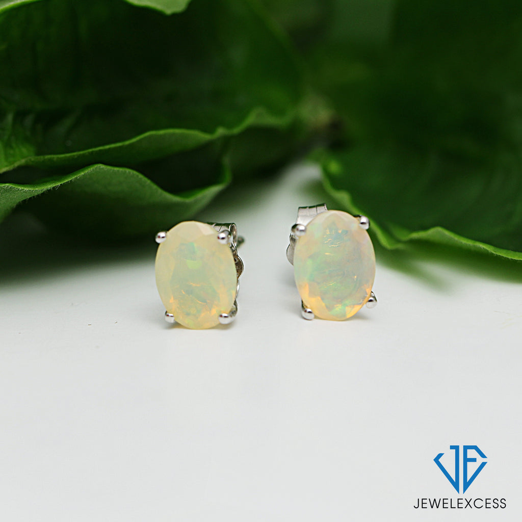 2.00 CTW Ethiopian Opal Stud Earrings – Sterling Silver (.925)| Hypoallergenic Studs for Women - Oval Cut Set with Push Backs