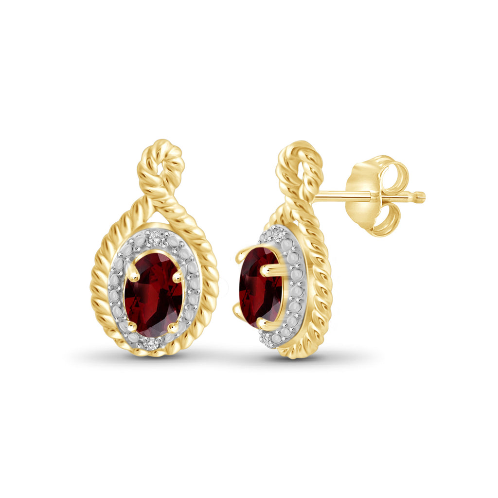 1.20 Carat T.G.W. Garnet Gemstone and White Diamond Accent 14K Gold-Plated Earrings