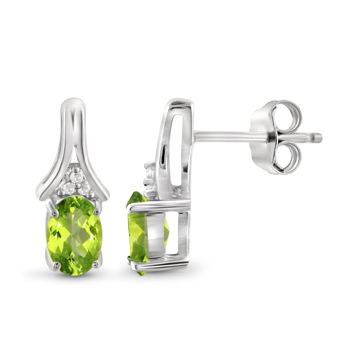 1.00 Carat T.G.W. Peridot And White Diamond Accent Sterling Silver Earrings