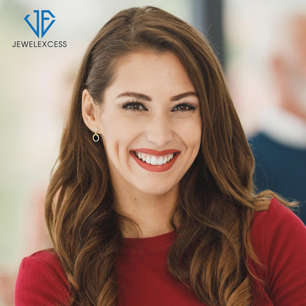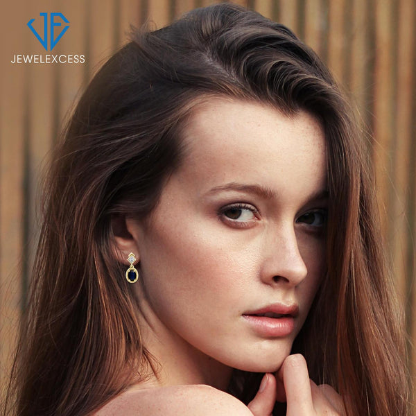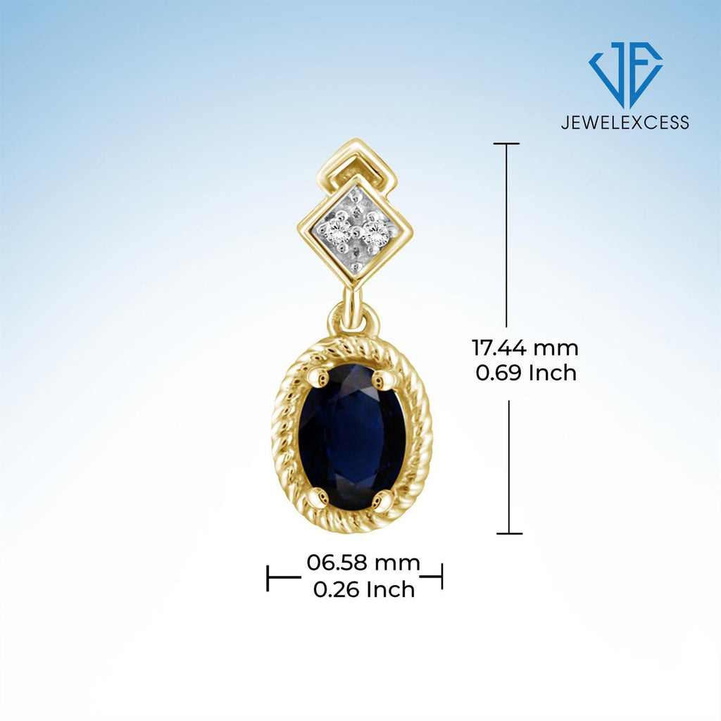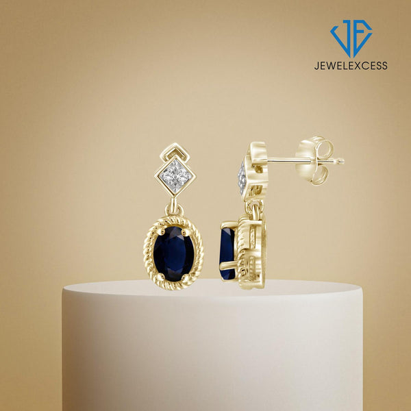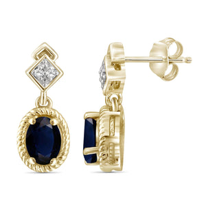 1.20ctw Genuine Saapphire and White Diamond Accent Earrings in 14k Gold Over Silver