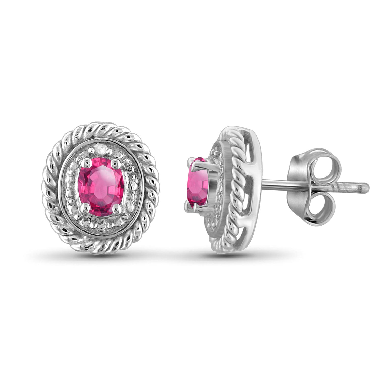0.32 Carat T.G.W. Pink Topaz Gemstone and White Diamond Accent Sterling Silver Stud Earrings