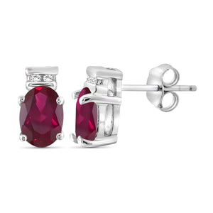 0.96 Carat Ruby Gemstone and 1/20 Carat White Diamond Sterling Silver Earrings
