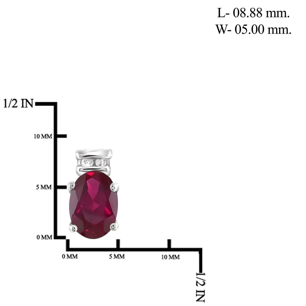 If you want your jewelry style to make a splash, look no further than these genuine ruby gemstone and accent white diamond earrings. Showcasing a sensational pair of oval-shaped ruby gemstones, each sterling silver piece is highlighted with an array of genuine white diamond accents. In addition, these drop earrings are highly polished with rhodium plating for top quality style that is befitting of your exquisite taste. Wear these stunners to give your evening style a pop of pretty color.