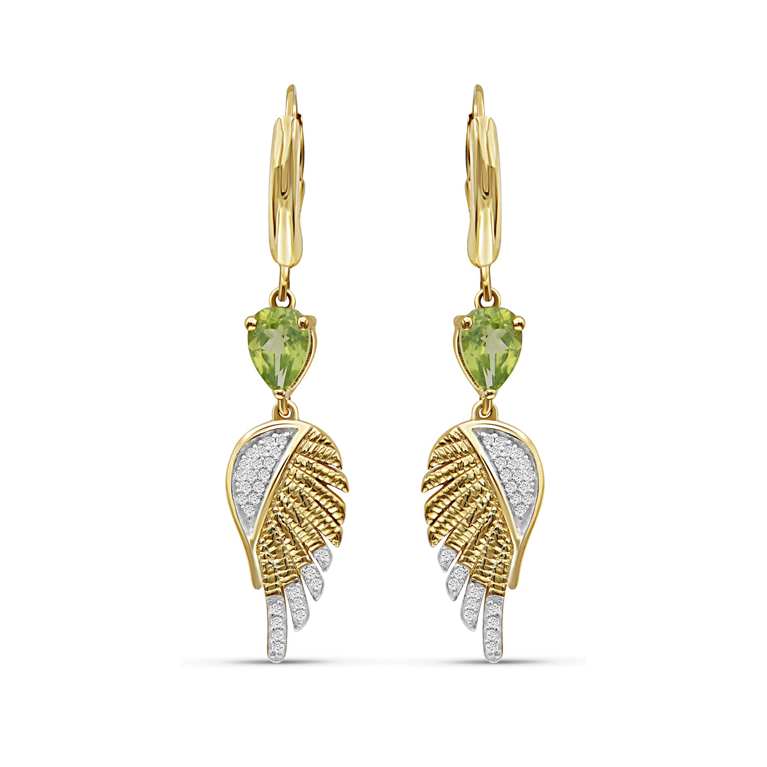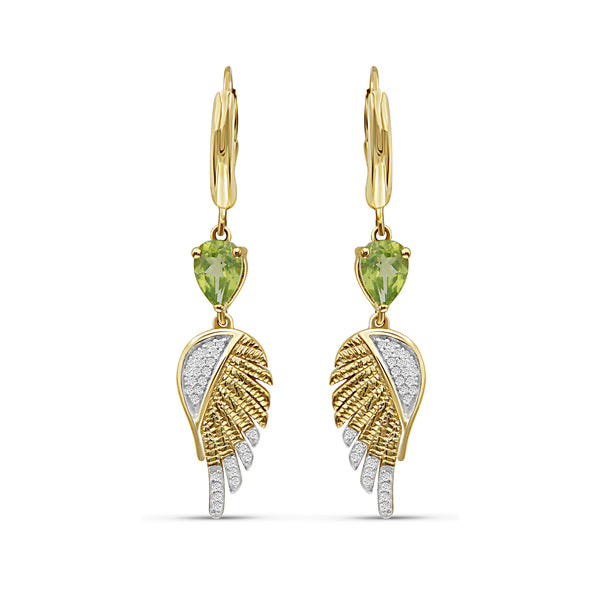 1 1/2 Carat T.G.W. Peridot & Created White Sapphire 14K Gold-Plated Dangle Earrings
