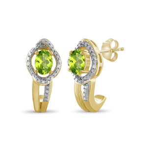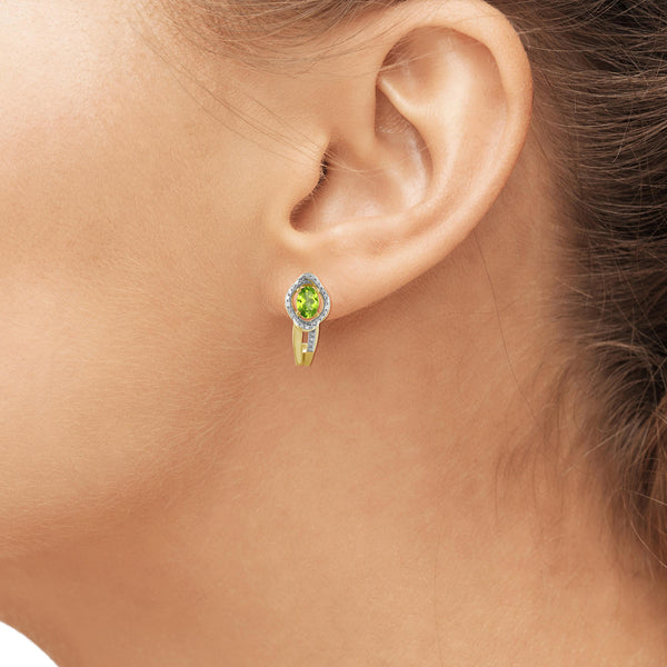 1.00 Carat T.G.W. Peridot And White Diamond Accent 14K Gold-Plated J Hoop Earrings