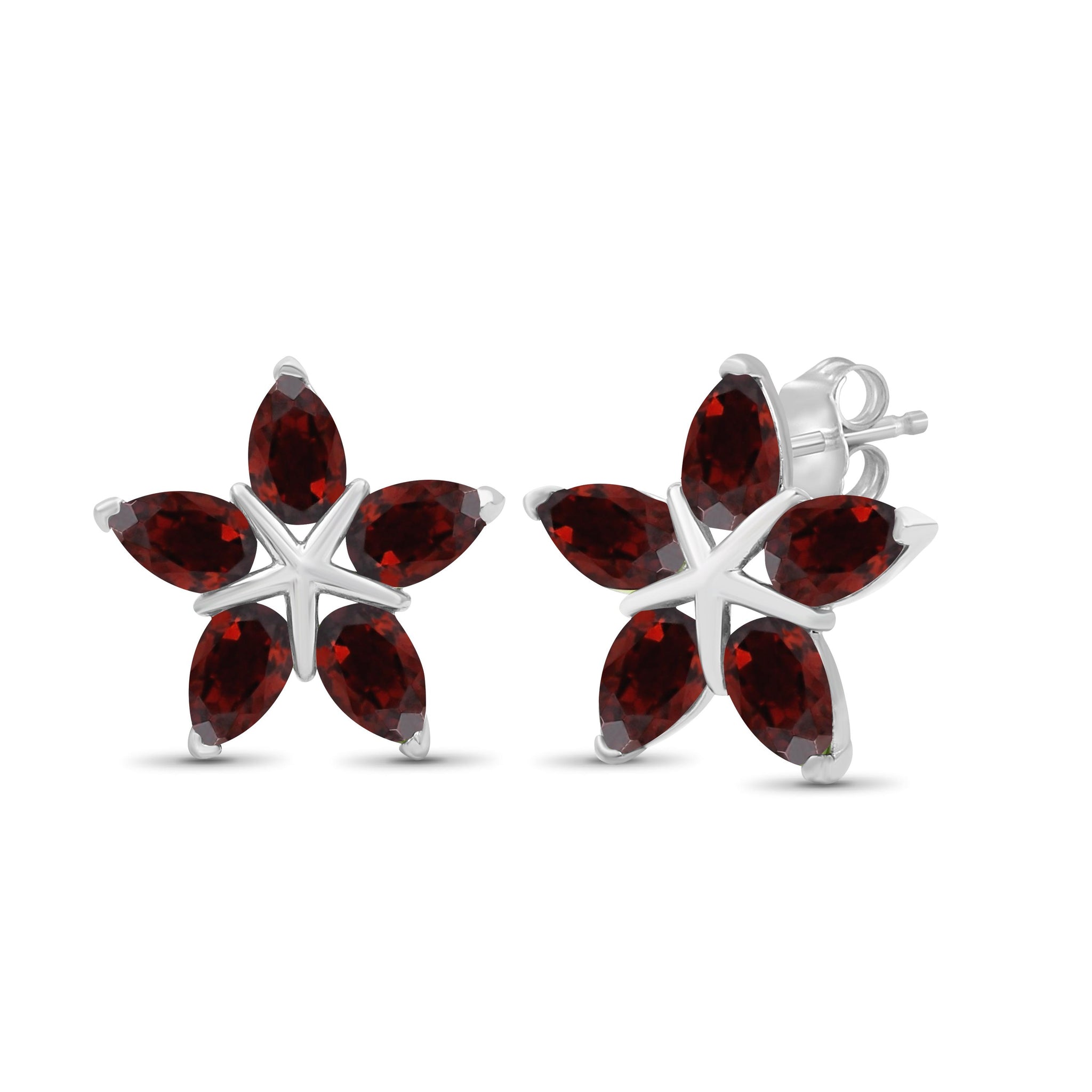 7 1/2 Carat T.G.W. Garnet Gemstone Sterling Silver Flower Earrings