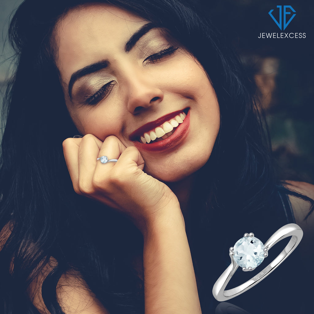 Unlike cheaply made gemstone rings for women that turn out to be fake, with dull, flat-looking faux stones, the JewelExcess Aquamarine Ring features a genuine 0.40 carat aquamarine stone .