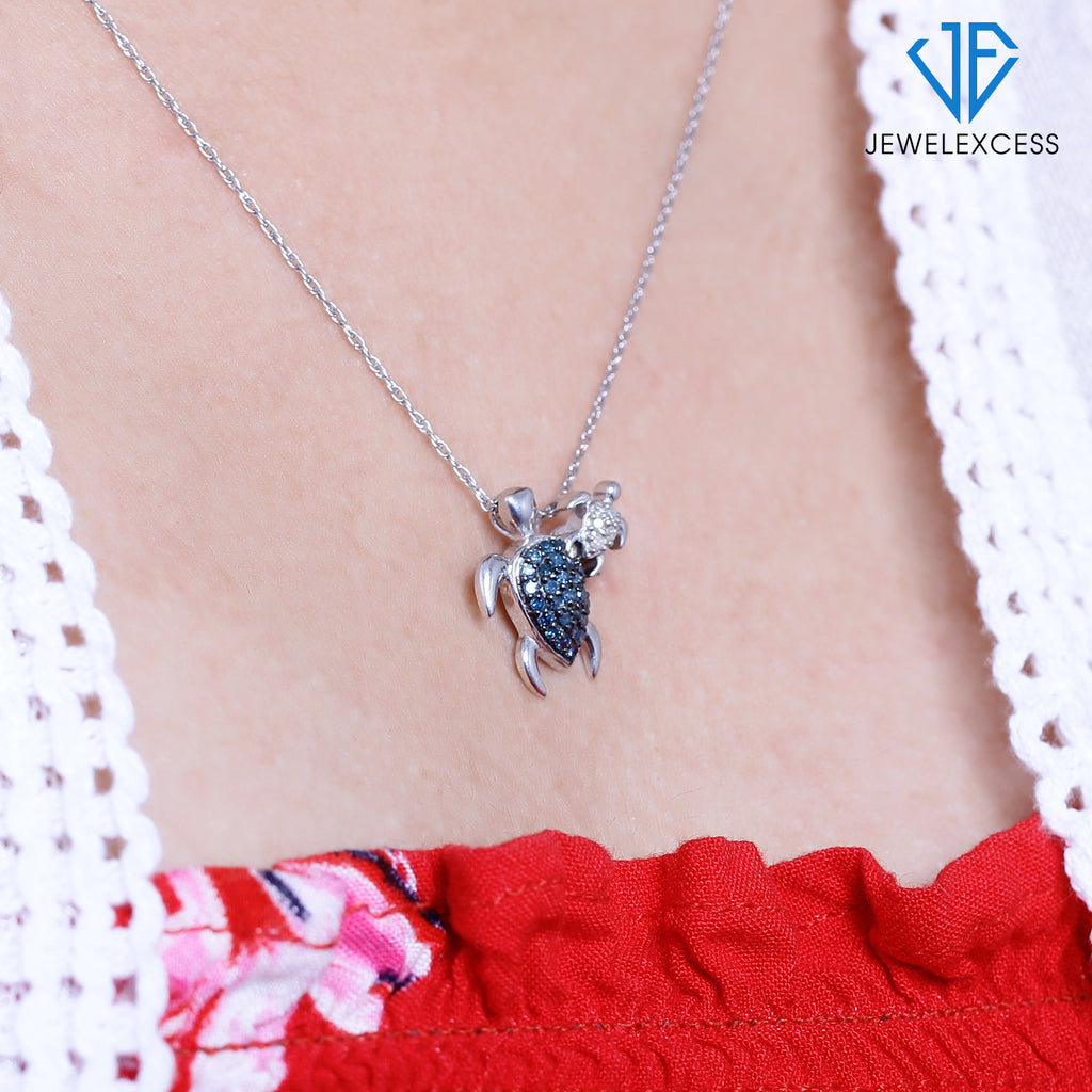 A special gift for your mother or grandmother should represent your love for them – At JewelExcess, we designed the Blue & White Diamond Motherly Love Turtle Pendant to be a true symbol of the bond between mother & daughter, with real ¼ CTW Blue & White Diamonds that shine as brightly as your love for each other.