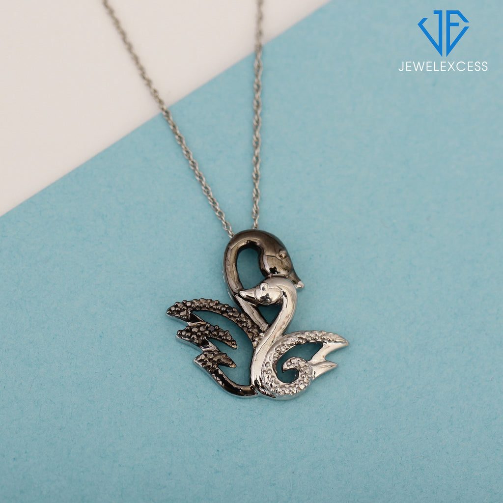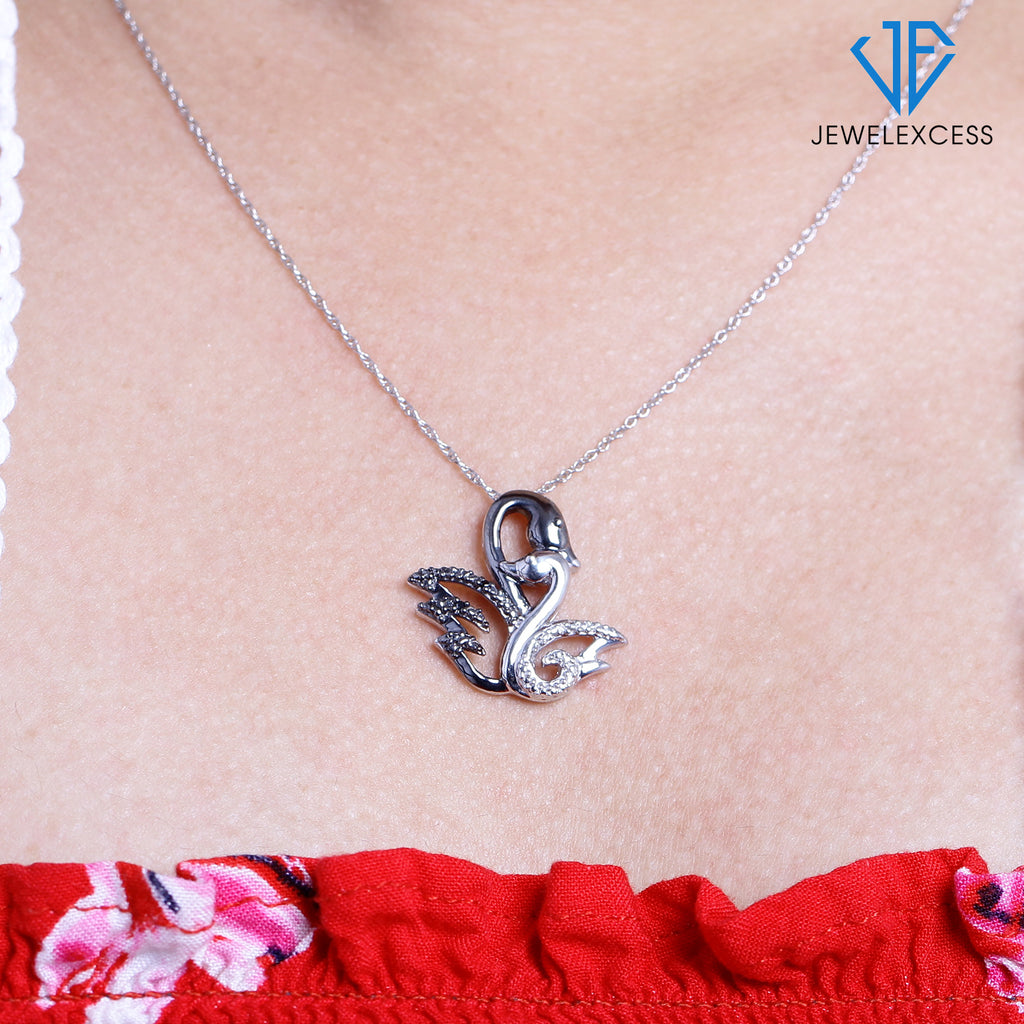 - The perfect gift – A symbol of wisdom, patience, and good luck, our charming sterling silver pendant ’s loving Swans glows with White Diamonds and the contrasting Silver and Black Sterling Silver. This gorgeous silver diamond necklace makes an ideal Christmas gift or birthday gift for all.