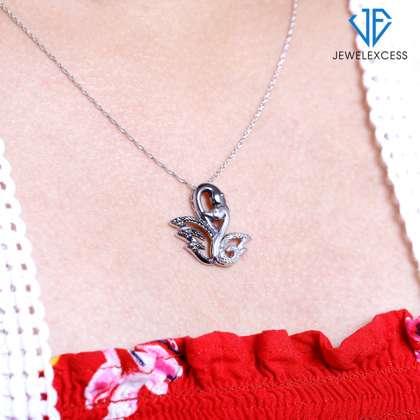 The JewelExcess Black & White Diamond Motherly Love Swan Pendant features: