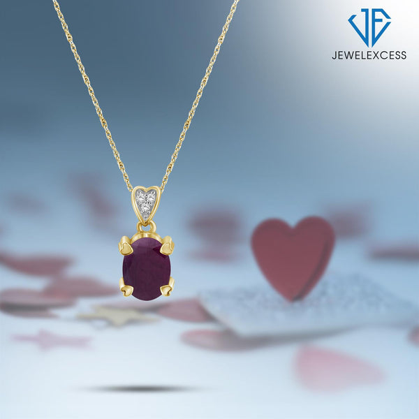 1.90 Carat T.G.W. Ruby And White Diamond Accent 14K Gold Over Silver Pendant