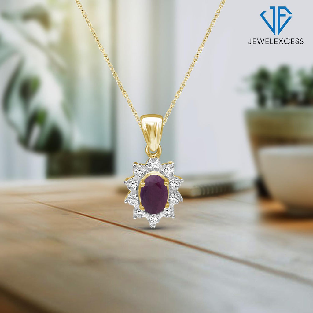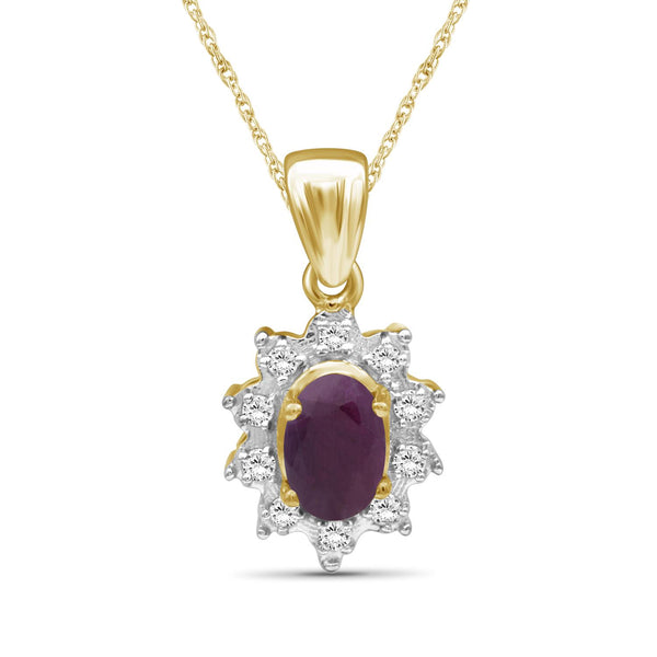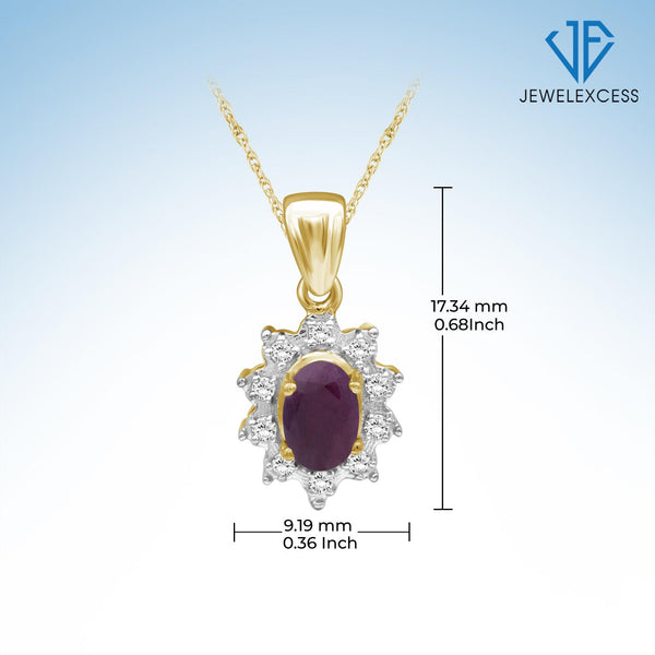 Show her how precious she is to you by presenting her with this gorgeous pendant.The eye-catching pendant features a 0.45-carat oval ruby and round white topaz that will glisten from her neck.