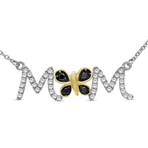 - Beautifully delicate, our diamond necklace features glittering black & white diamonds in a meaningful Butterfly pendant design while MOM is spelled out in gold-plated butterfly in center. Our mothers necklace pendant measures 0.71” across by 1.11” with a sterling silver chain, making it the perfect subtle sparkle she can wear at any time. Make mom feel special on Mother’s Day, her birthday, or just because with our stunning Butterfly necklaces for women.