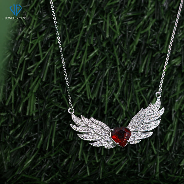 1 3/4 Carat T.G.W. Garnet And 1/10 Ctw White Diamond Sterling Silver Pendant