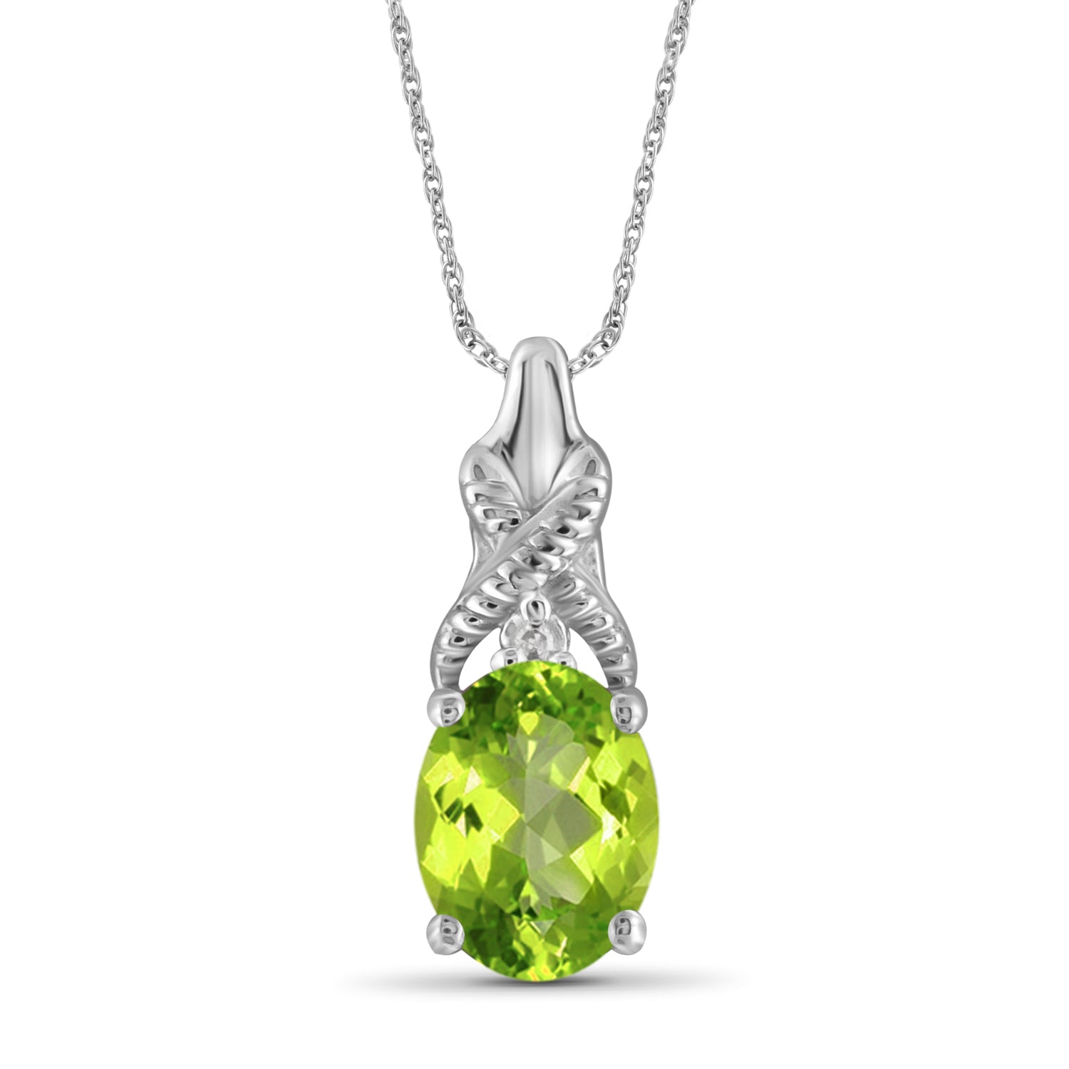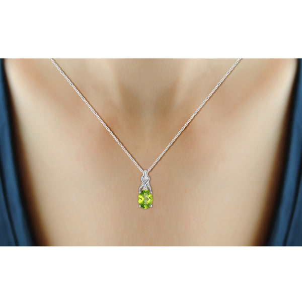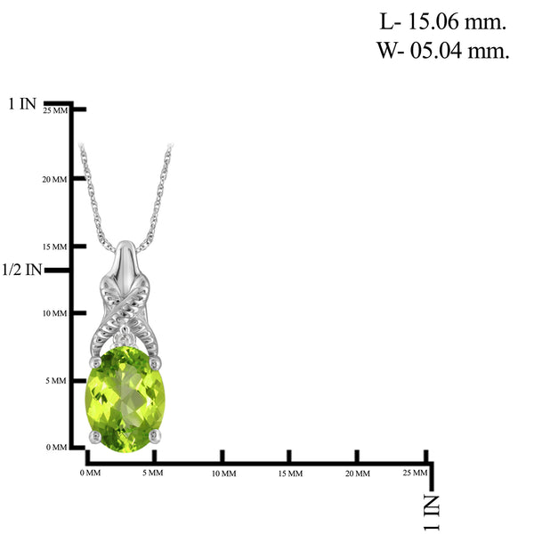 Create a look that is both elegant and traditional with the 0.82 Carat T.G.W. Peridot Gemstone and Accent White Diamond Pendant. The oval-cut peridot shines with the addition of white diamond flourishes. Not only does it flatter all types of skin tones, it is very easy to coordinate with everything in your wardrobe. Set in lustrous sterling silver or gold tone, the spectacular centerpiece gemstone is large enough to catch the light to show off its glittering glory. It comes with an 18" chain that features a spring ring for easy wear. The gorgeous light green hues of the white diamond accent and peridot pendant make this piece an ideal pick for your loved one's August birthday. Give your look the royal treatment in this stunningly designed solitaire piece that provides a unique, sleek look.