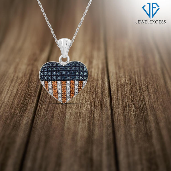 1/4 Carat T.W. Multi-Color Diamond Heart Sterling Silver Pendant