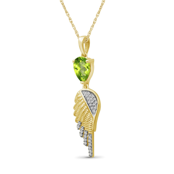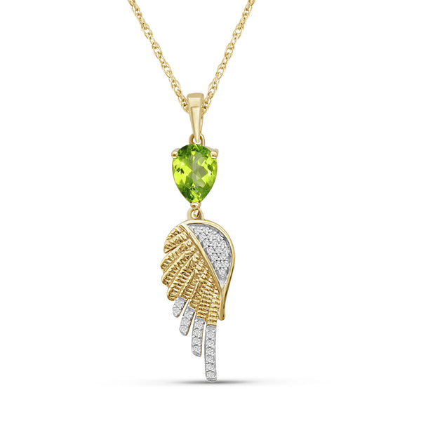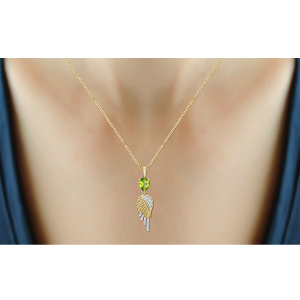 0.90 CTW Peridot & 1/10 Carat White Diamonds Pendant in 14K Gold Plated Silver