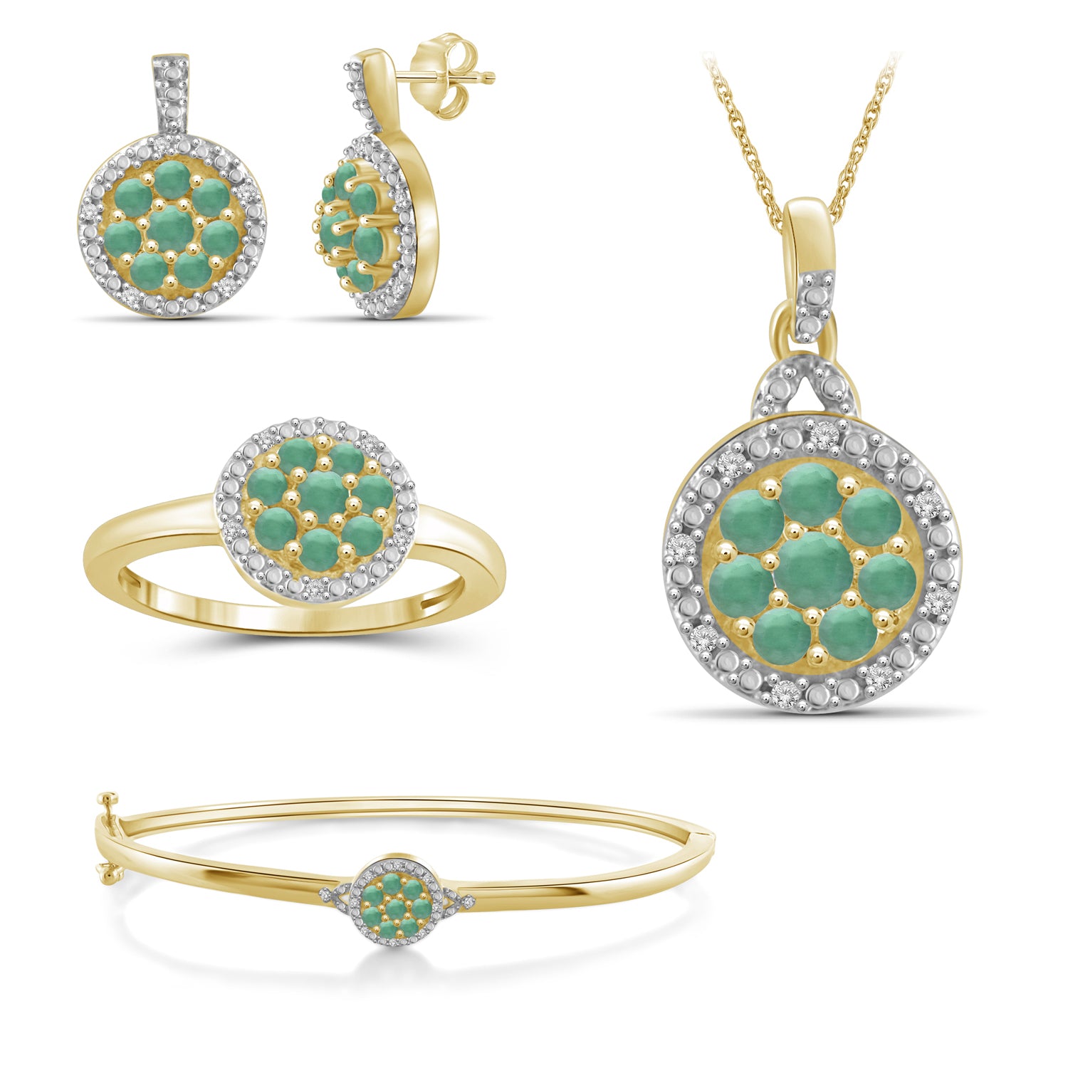 2 1/2 Carat T.G.W. Emerald And White Diamond Accent 14K Gold-Plated 4-Piece Cluster Jewelry Set